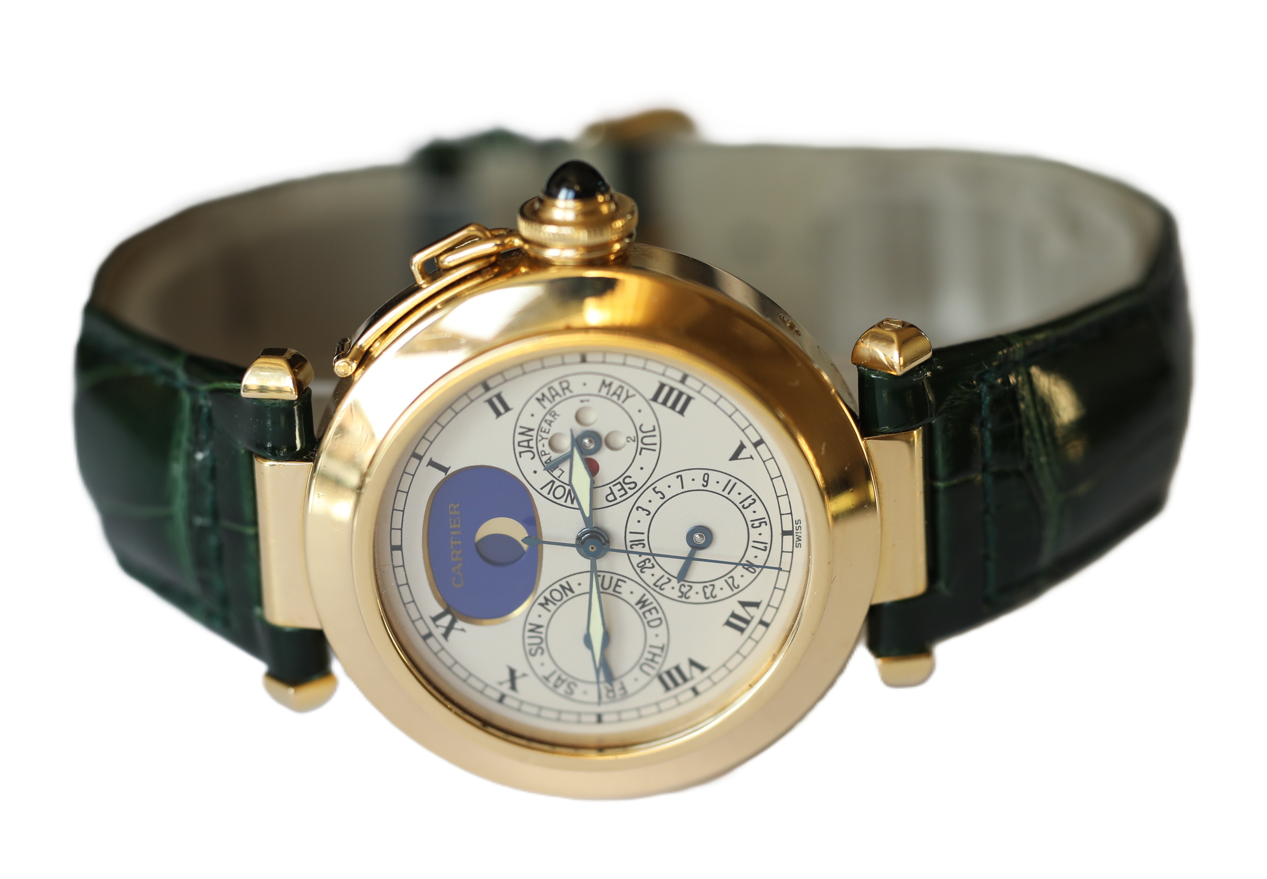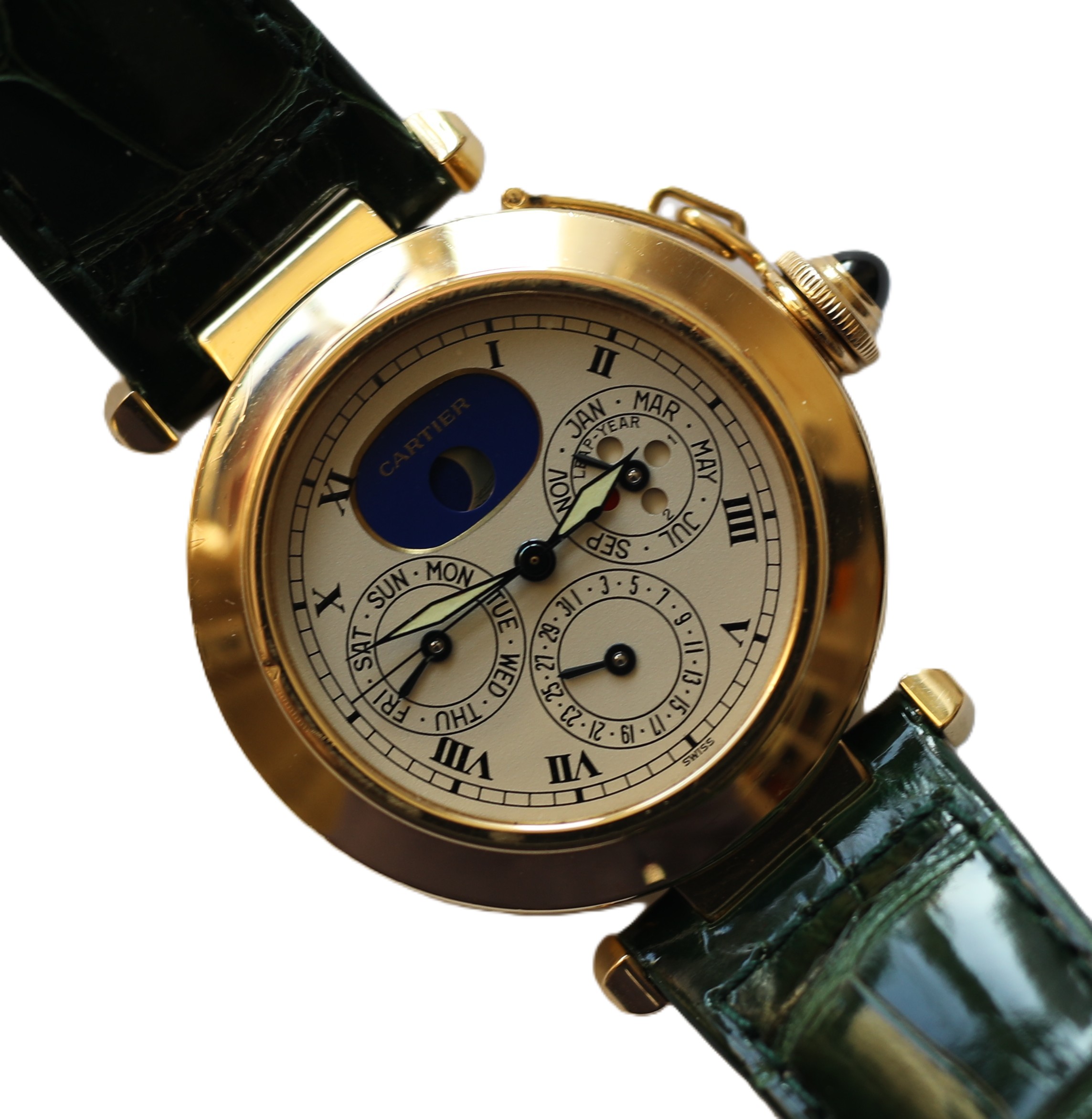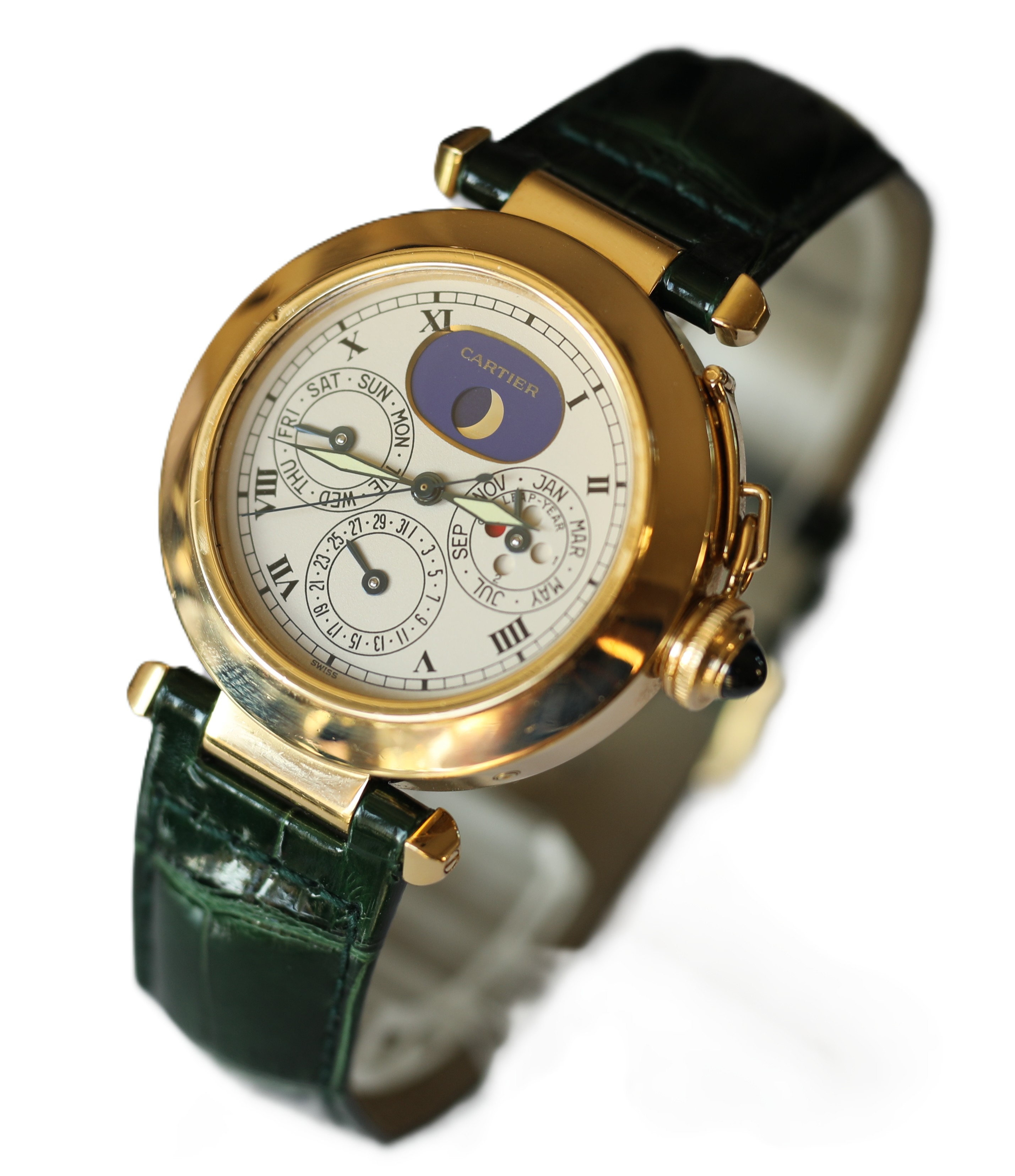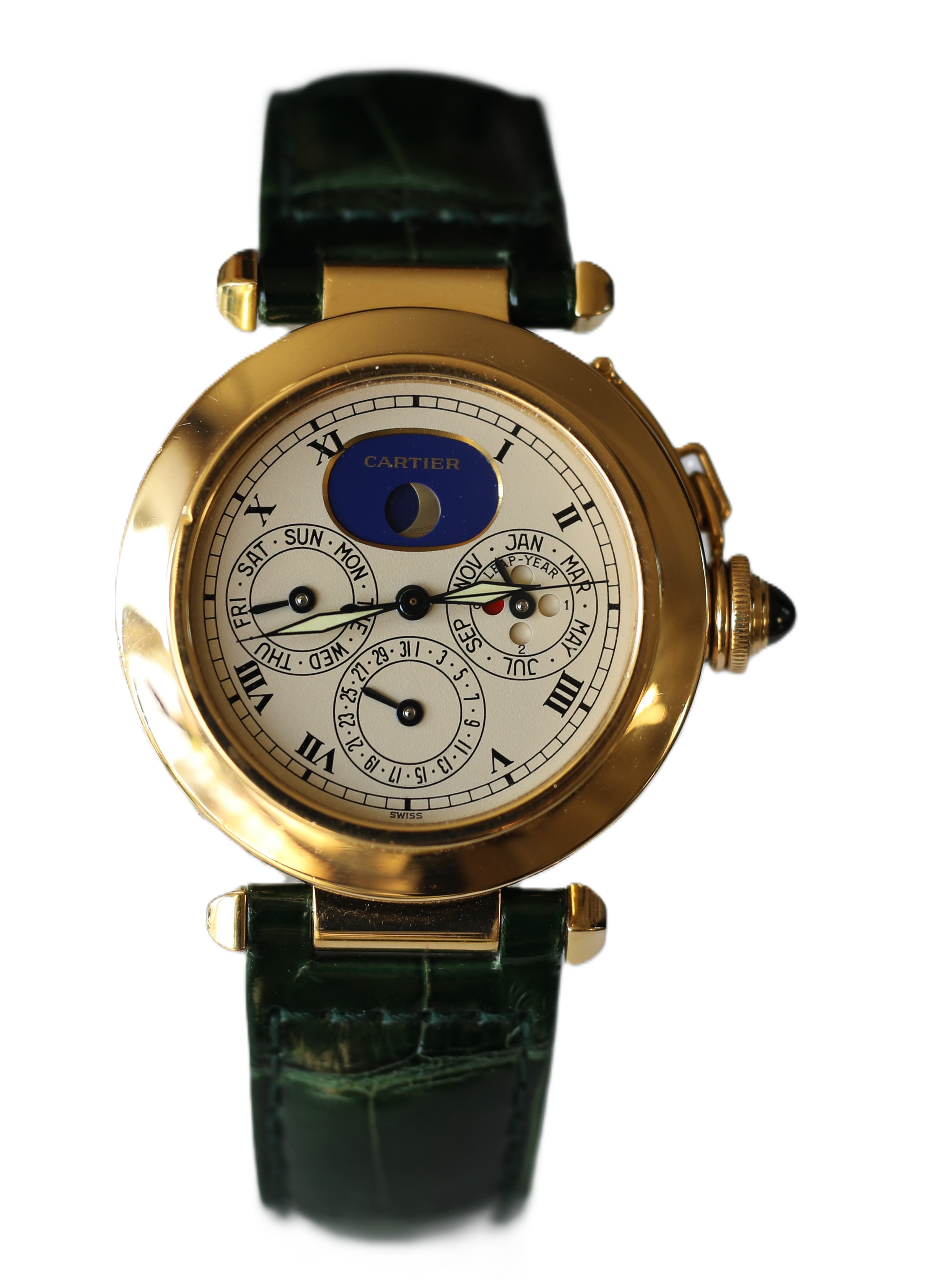 Cartier Pasha 18k / 750 Gelbgold Ewiger Kalender Perpetual Herrenuhr Ref.: 30003 mit Box