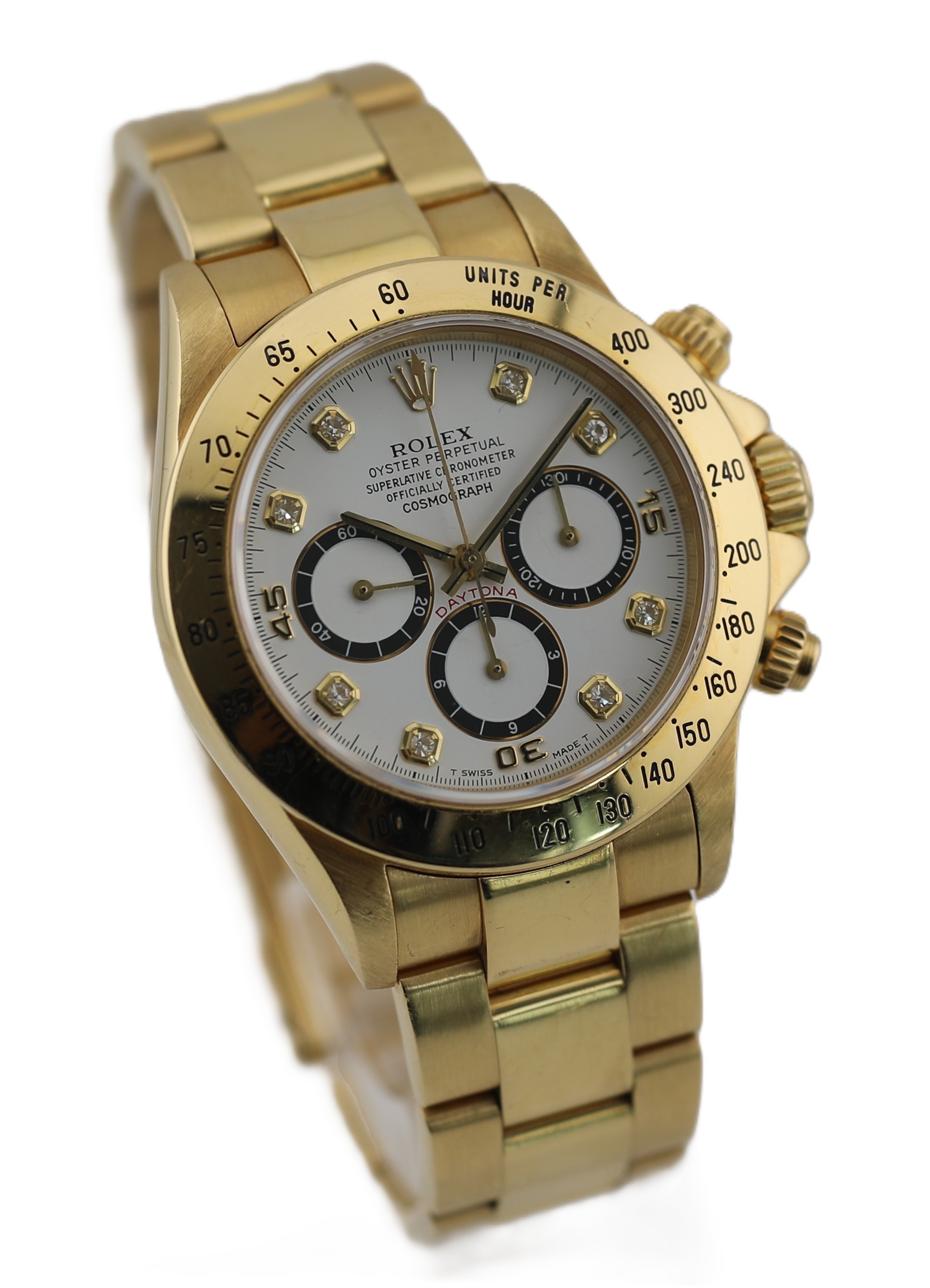 Rolex Daytona 18k / 750 Gelbgold Zenith 16528 Weißes Brillantblatt Inverted Six