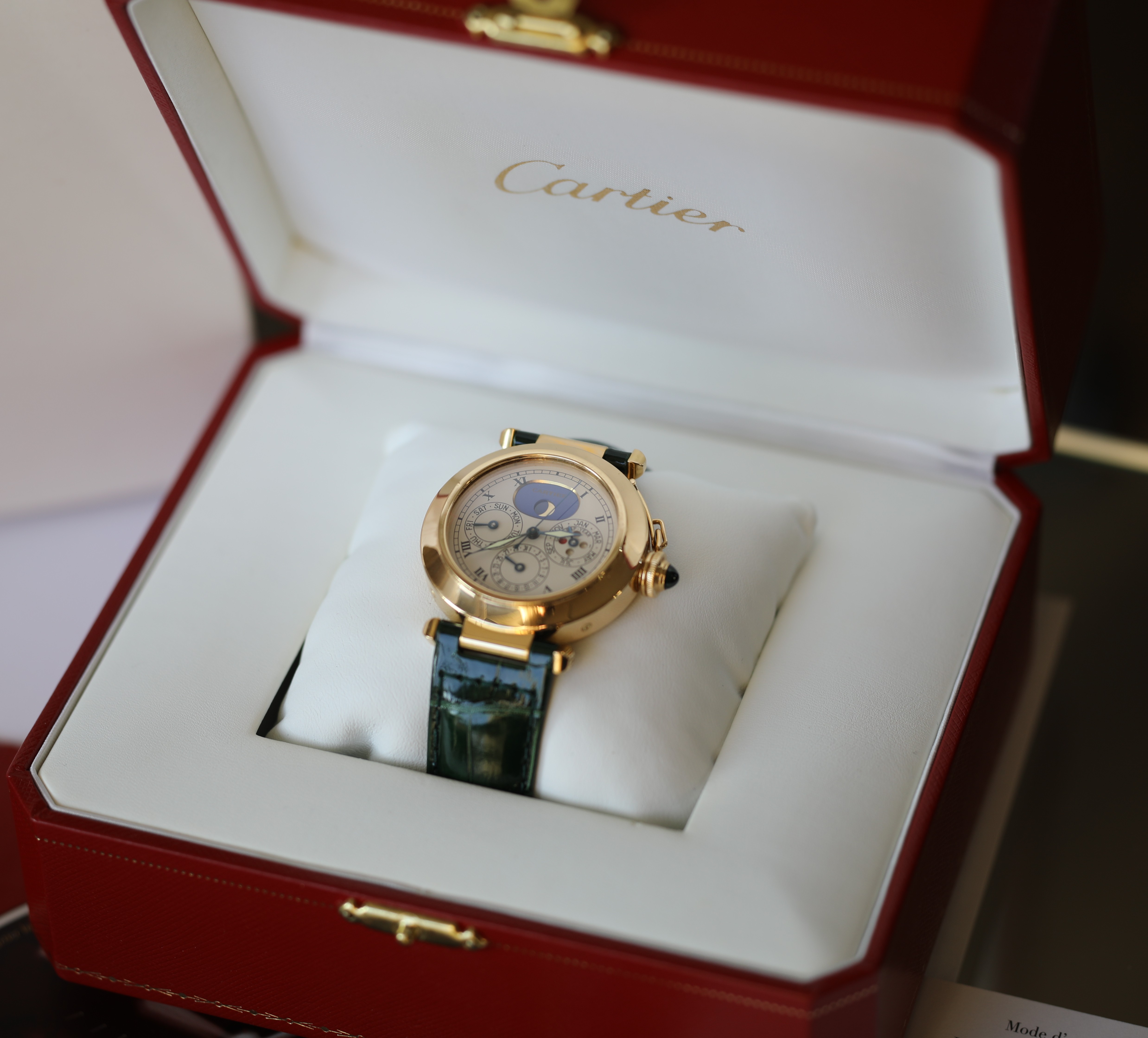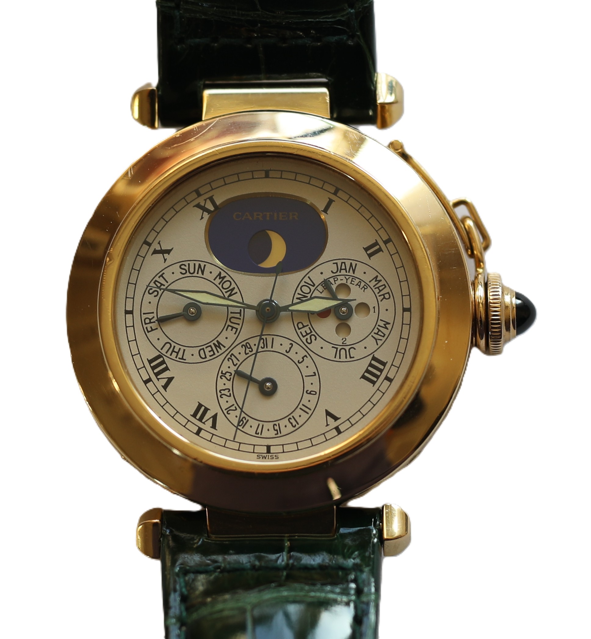 Cartier Pasha 18k / 750 Gelbgold Ewiger Kalender Perpetual Herrenuhr Ref.: 30003 mit Box